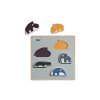 Dřevěné puzzle s obrázky jeleních zvířátek pomáhá rozvíjet motorické schopnosti batolat. Elphee, Croco, Ozzo a Raffi tvoří dohromady roztomilé puzzle.
