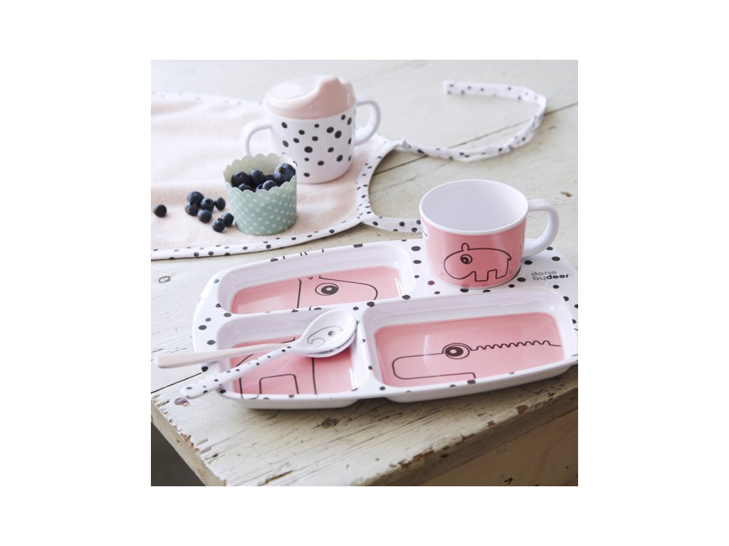 Mělký hrníček od dánské firmy Done by Deer s malým uchem pro učící se prstíky. Ideální v kombinaci s odděleným talířem, který rovněž naleznete v naší nabídce.