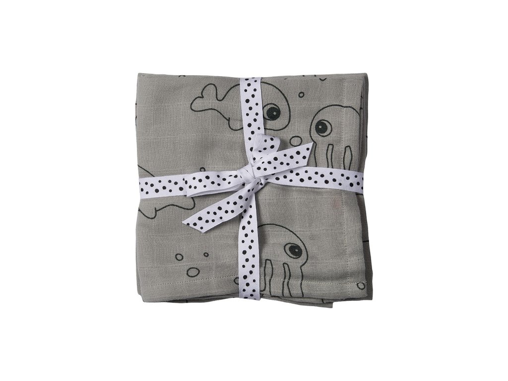 DONE BY DEER MUŠELÍNOVÉ ZAVINOVACÍ PLENKY SEA FRIENDS 2KS - ŠEDÉ