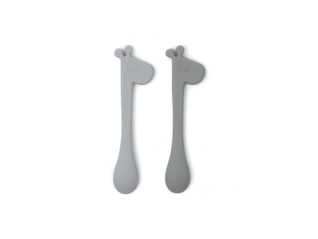 DONE BY DEER Set 2ks jídelních silikonových lžiček Peekaboo Raffi - šedé