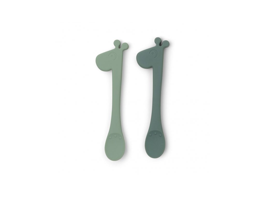 DONE BY DEER Set 2ks jídelních silikonových lžiček Peekaboo Raffi - zelené