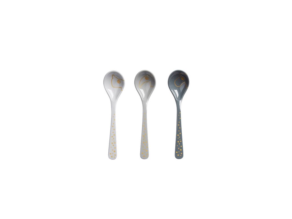 DONE BY DEER Set 3ks jídelních lžiček Happy Dots - zlaté/šedé