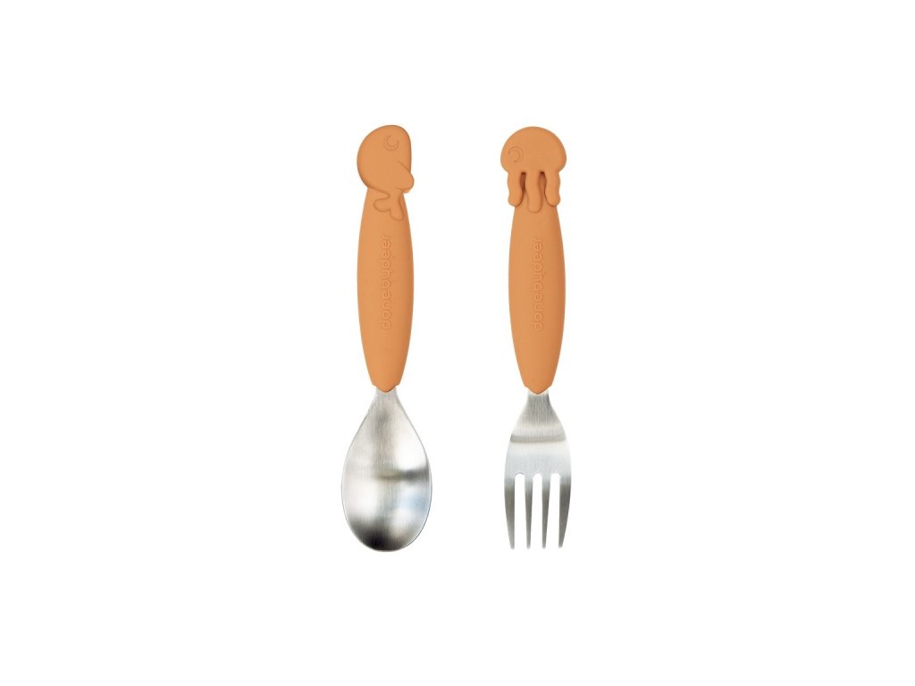 DONE BY DEER YummyPlus set lžíce a vidličky Sea friends - hořčicový
