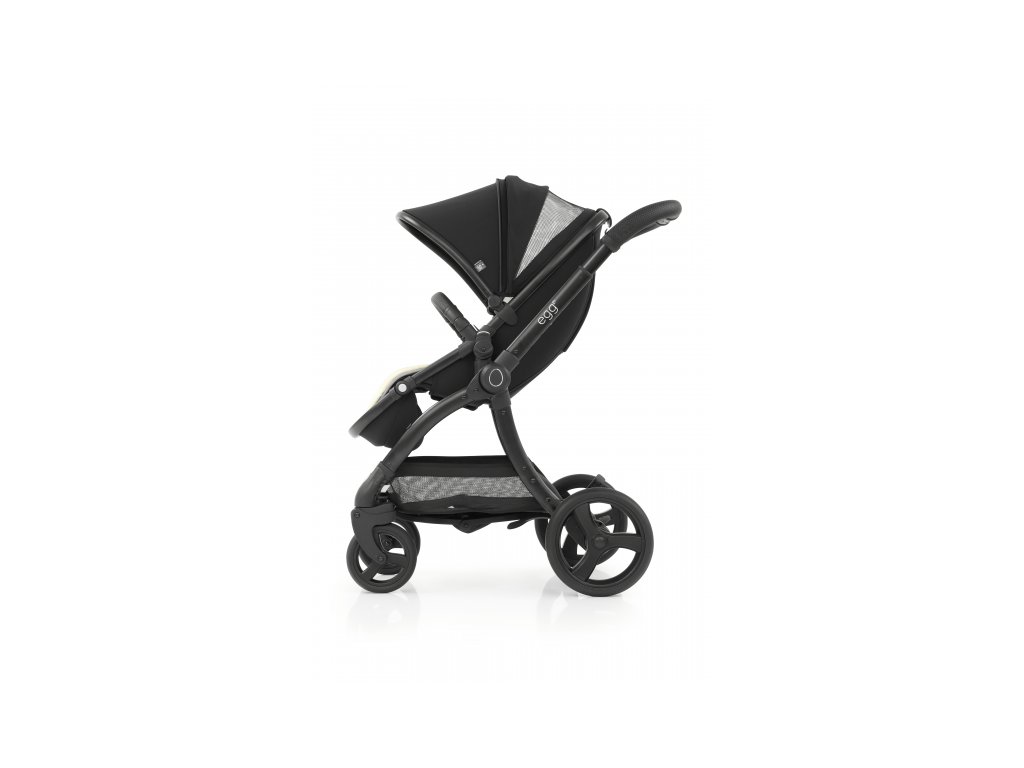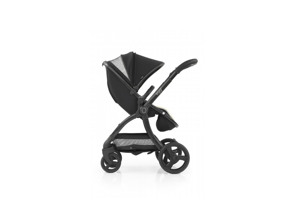 - nová, prostornější sedací část kočárku egg²® je o 7 cm vyšší (délka zádové opěrky je 59 cm) a na podvozku je posazena o 3,6 cm výše, lze ji sklopit do 3 poloh a klasicky nabízí 2 pozice umístění na podvozku – směrem k rodiči nebo čelem do okolí;