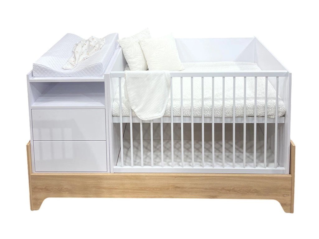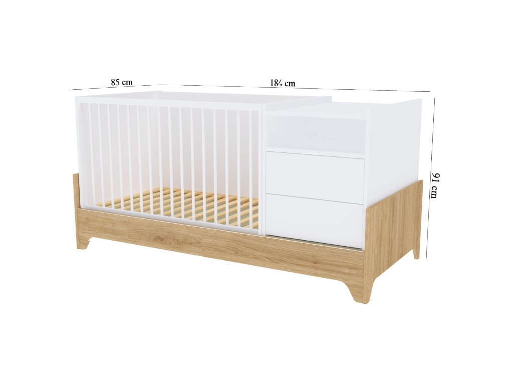 I když se na první pohled zdá být kombi postel robustní, opak je pravdou. Vždyť na 2 metrech máte vše, co jindy zabírá mnohem více prostoru – postýlku i přebalovací komodu. Toto řešení doporučujeme pro menší dětské pokoje. Univerzálnost sestavy tkví v její rozložitelnosti na jednotlivé kusy nábytku.