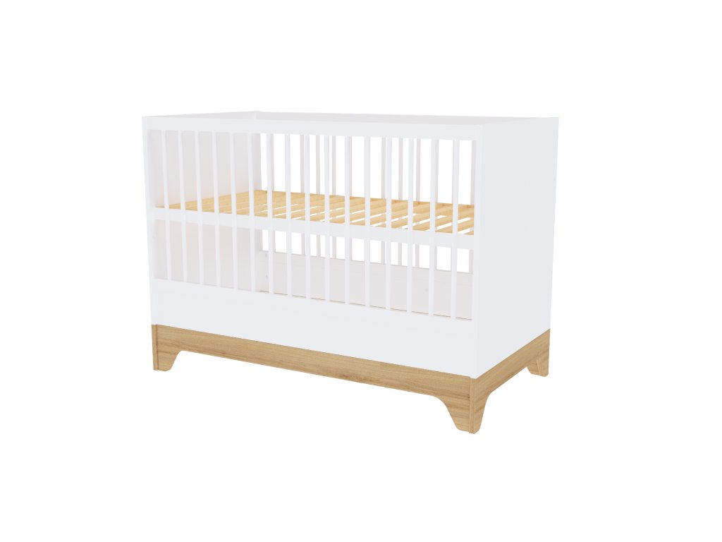 Moderní bílá dětská postýlka s vnitřními rozměry120x60 cm. Její čistý design, přírodní vzor dřeva a kombinace bílé barvy vyzařuje teplo a klid.