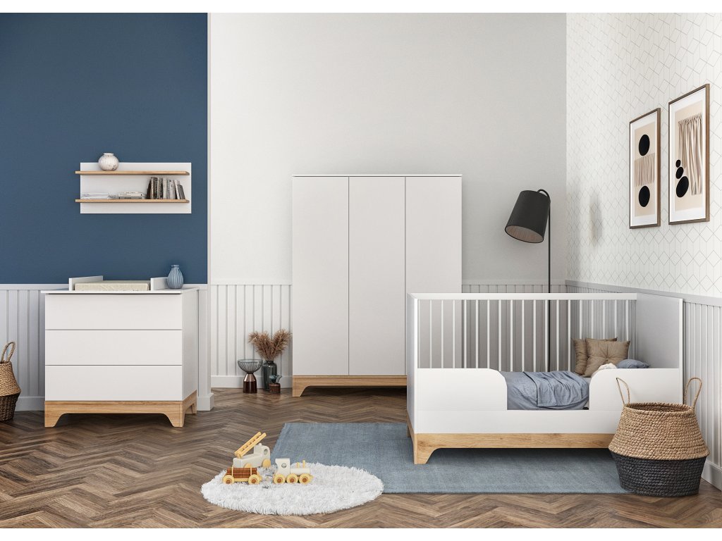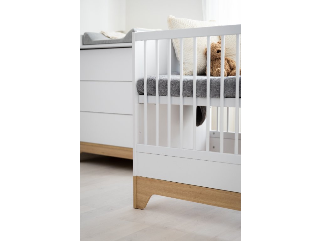 Dětská postýlka Lumina White 60x120 je nezbytným prvkem moderního dětského pokoje. Její čistý design, přírodní vzor dřeva a kombinace bílé barvy vyzařují teplo a klid a dokonale zapadnou do každého interiéru.