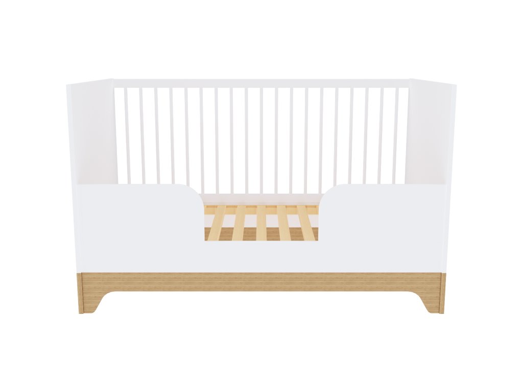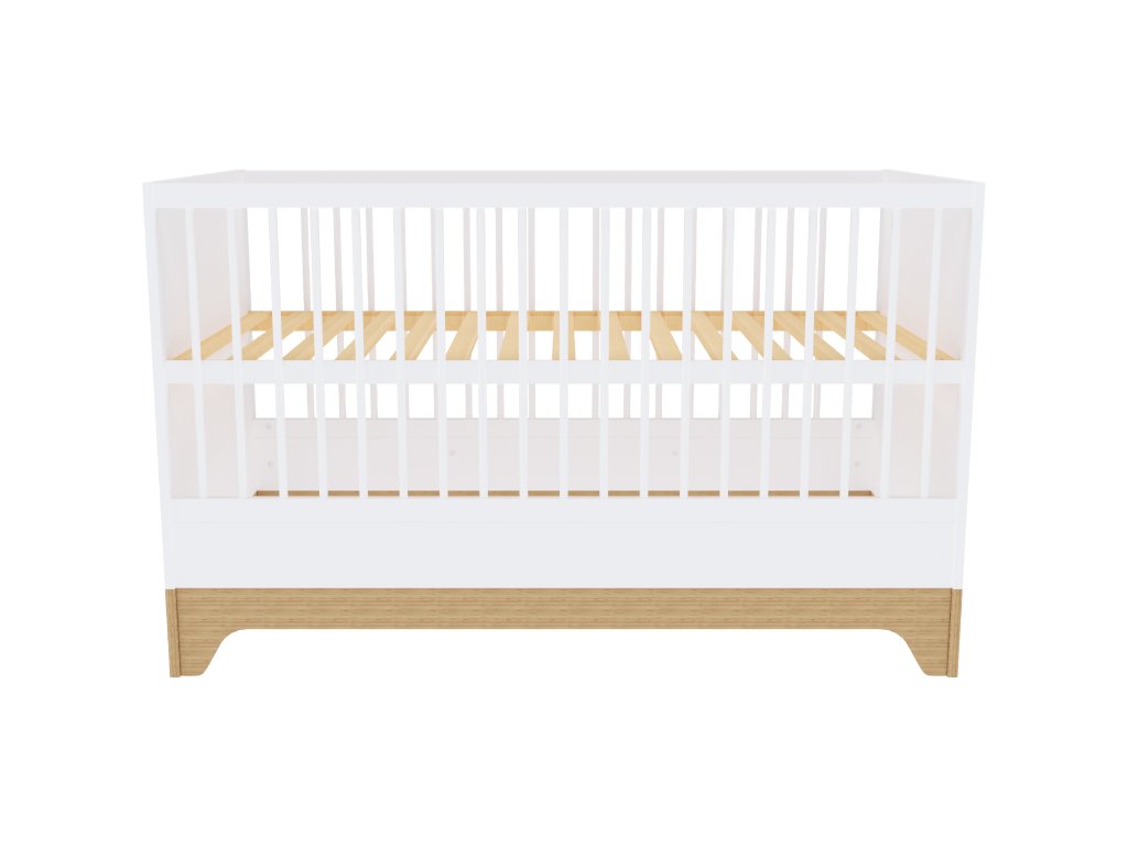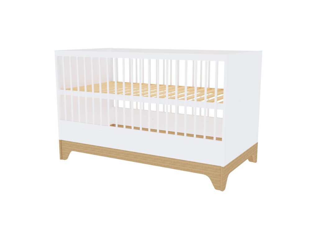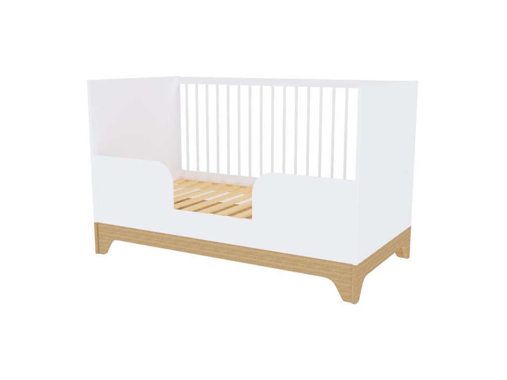 Moderní variabilní dětská postýlka s vnitřními rozměry140x70 cm s čely v bílé barvě. Zpočátku postýlka, později přestavíte na postel JUNIOR.