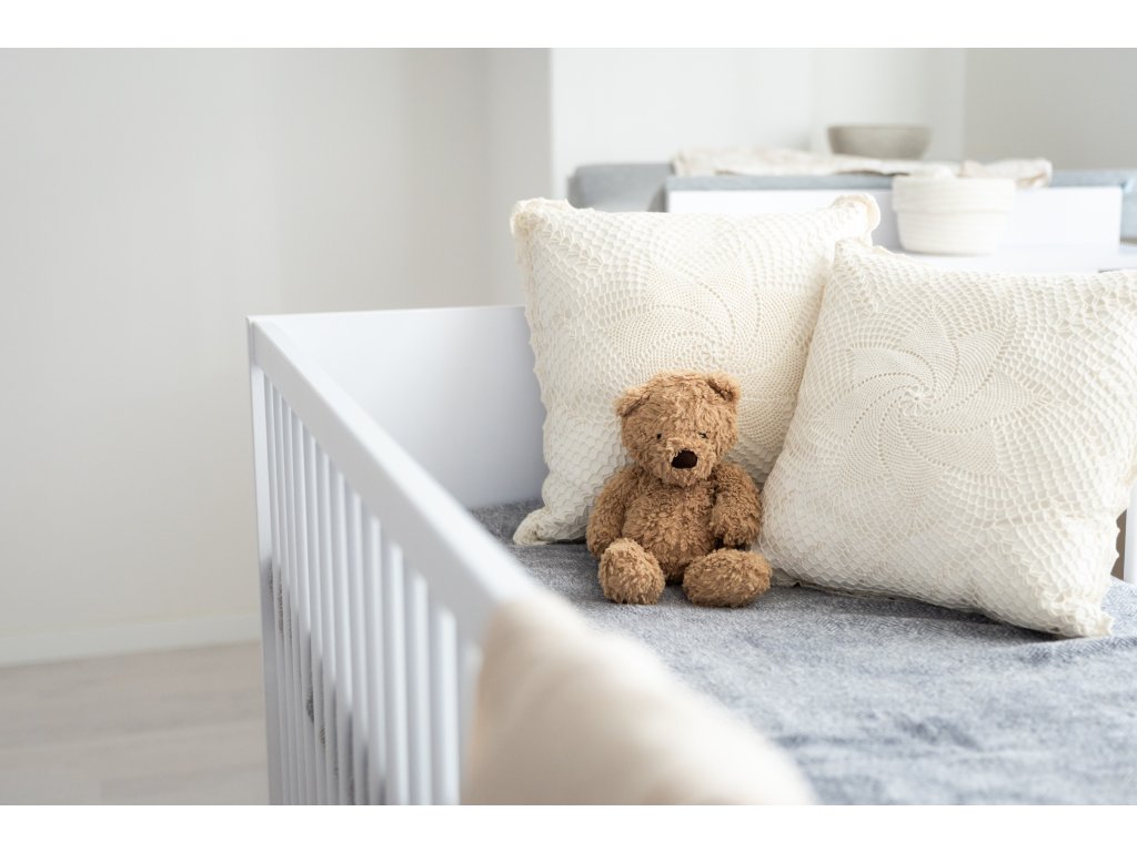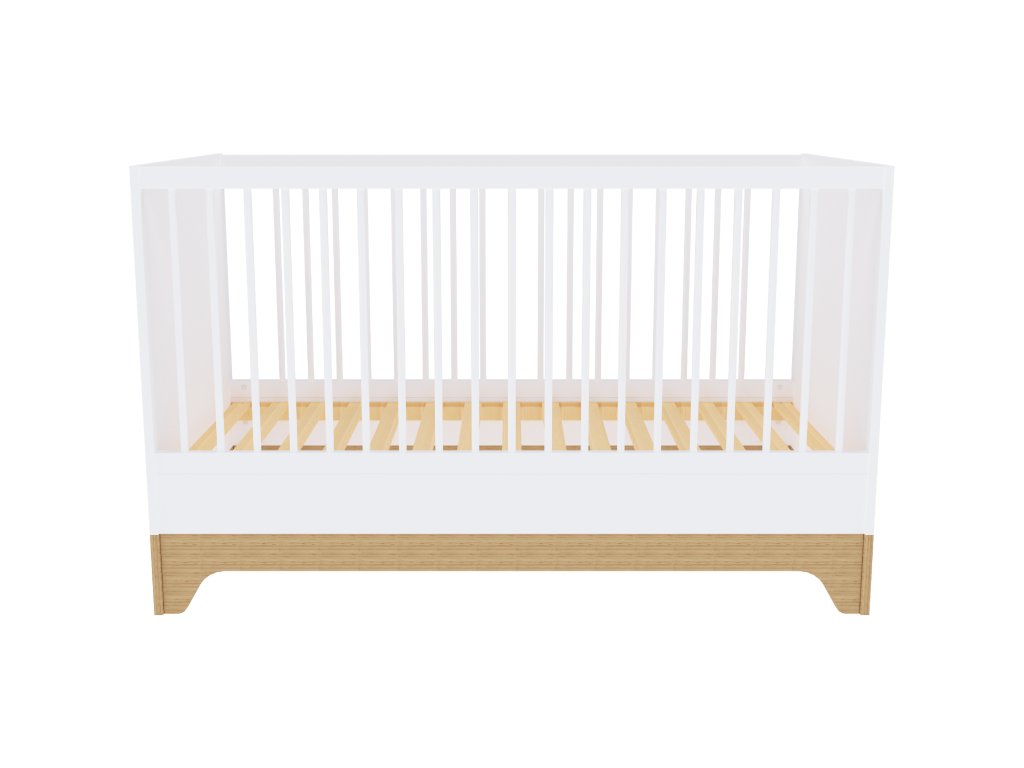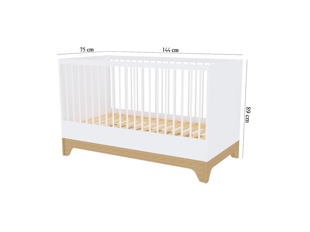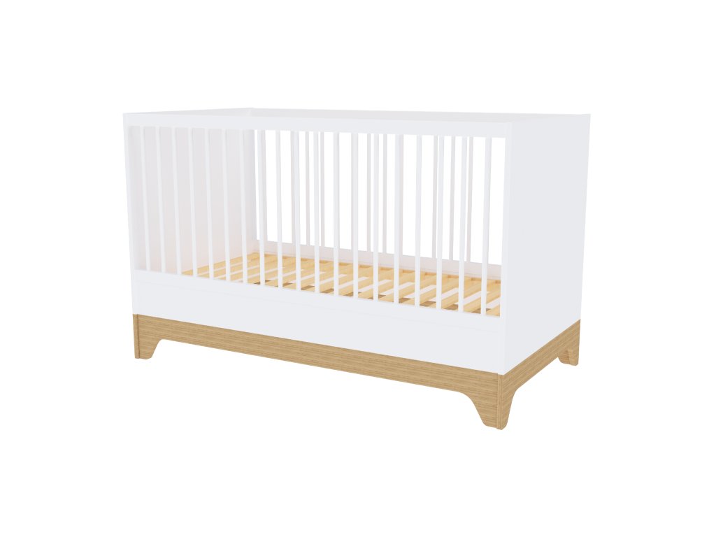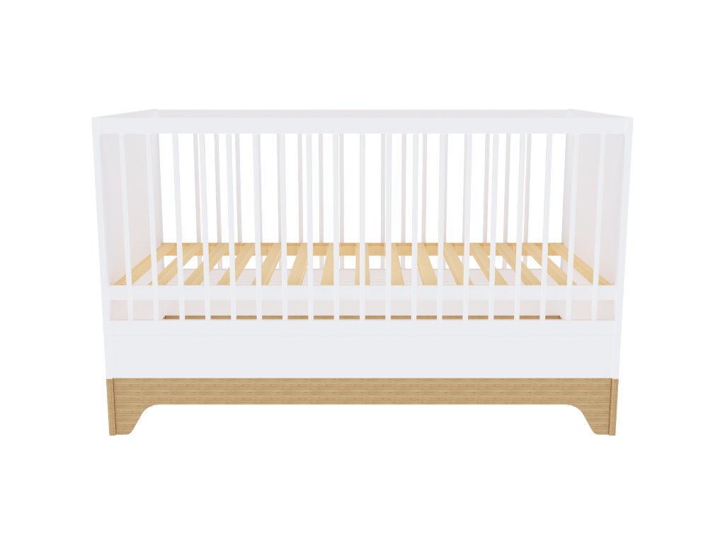 Moderní variabilní dětská postýlka s vnitřními rozměry140x70 cm s čely v bílé barvě. Zpočátku postýlka, později přestavíte na postel JUNIOR.