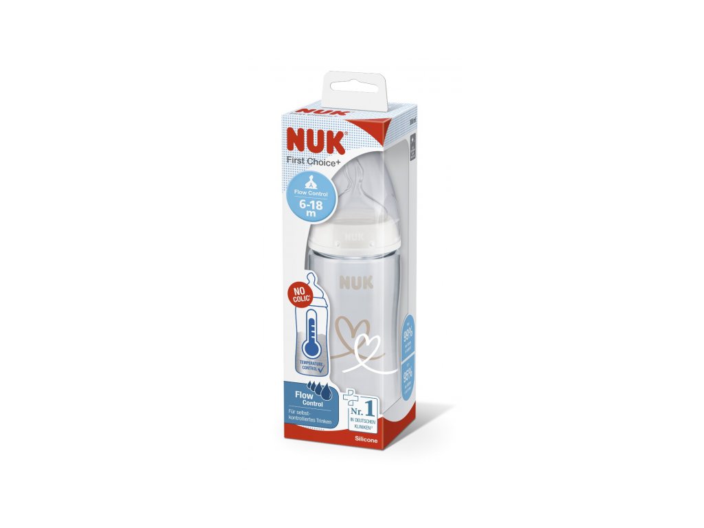 Tato funkce nebyla v této podobě dosud představena. Kojenecké láhve NUK First Choice+ jsou nyní vybaveny novou NUK kontrolkou teploty a pomáhají tak zabránit tomu, aby vaše dítě pilo příliš horký příkrm. Kontrolka vypadá jako teploměr, je umístěna mezi ryskami a teplota obsahu láhve změní její barvu. Tato funkce pomůže rodičům dosáhnout optimální teploty při krmení jejich dítěte.