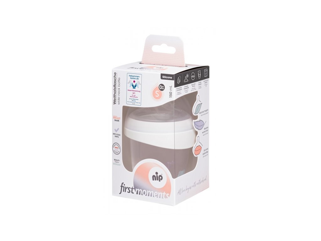 Pro perfektní začátek : naše láhev z kolekce "FIRST MOMENT" se širokým hrdlem a perfektně padnoucím silikonovým dudlíkem. Kulatý tvar dudlíku a mimořádně široká opora rtů kopírují tvar matčina prsu a vytvářejí tak přirozený pocit pití. Obzvláště široké hrdlo usnadňuje nejen plnění a čištění, ale díky širokému hrdlu lze lahvičky stohovat pro ušetření vašeho místa. Díky šroubovacímu kroužku můžete snadno a pohodlně přepravovat nebo zamrazovat mateřské mléko nebo dětskou výživu.