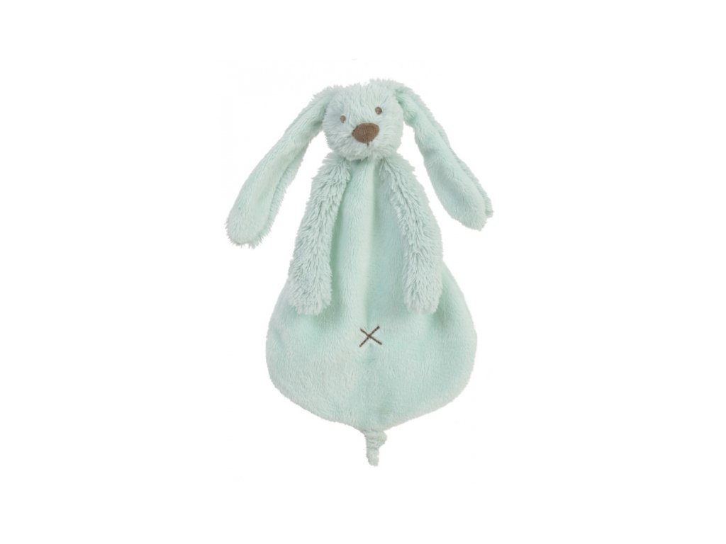 Součástí tohoto dárkového setu je plyšová hračka a muchláček s motivem tyrkysového králíčka Richieho.