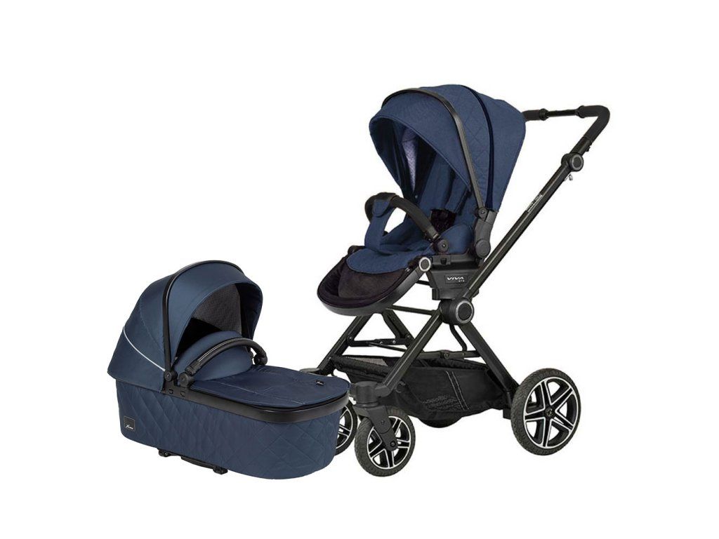 Kombinovaný kočárek Viva GTR Selection obsahuje: konstrukci s koly a košíkem sportovní sezení rukojeť s koženým vzhledem