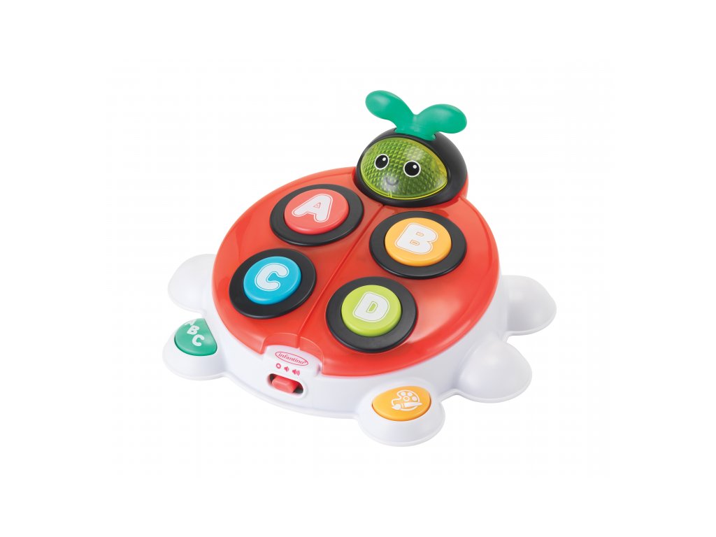 Roztomilá interaktivní beruška, která děti zábavnou formou učí 5 barev a celou abecedu. Stačí otevřít křídla a objeví se všechna písmenka. Hračka dětem představuje názvy písmen, říká slova, která na dané písmeno začínají, a navíc je zapojuje do hry pomocí „hledej a najdi“ kvízů – ptá se, aby děti našly konkrétní písmena nebo barvy. Pro ještě větší zábavu berušce svítí obličej. Beruška nabízí 4 písničky, 93 slov a frází a 14 zvukových efektů, které pomáhají udržet pozornost dítěte.