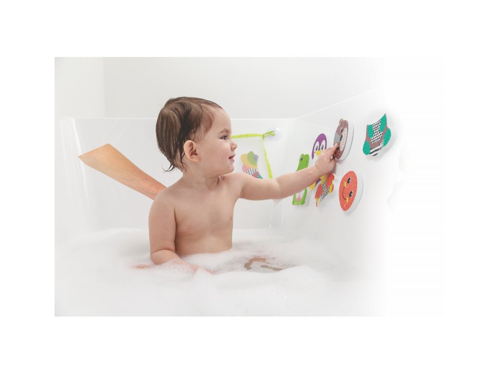 Sada šesti dvoudílných pěnových samolepek v podobě roztomilých zvířátek zajistí vašemu dítěti spoustu zábavy při koupání ve vaně. Pěnová zvířátka drží po namočení na vaně či na dlaždičkách a díky dvoudílnému provedení může dítě buď hledat, které dva díly patří k sobě a nebo naopak vytvářet legrační kombinace horního a spodního dílu zvířátek, které k sobě vůbec nepatří.