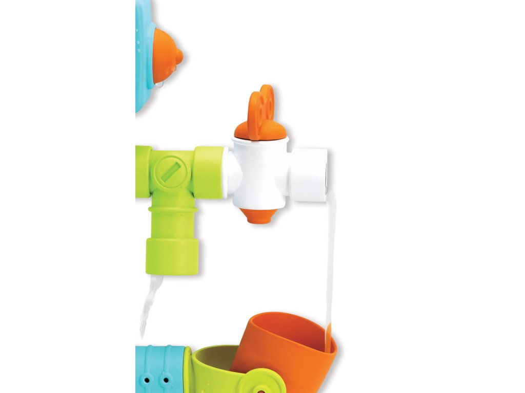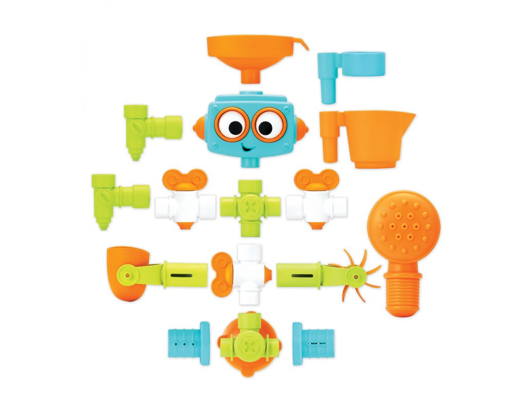 Originální hračku pro hraní s vodou během koupání ve vaně snadno sestavíte a připevníte na stěnu s pomocí přísavek. Po nalití vody do trychtýře na hlavě robota voda proudí jednotlivými částmi těla robota a vytváří různé vodní efekty. Oči robota se točí a utahováním a povolováním šroubů změníte směr, kudy voda proudí.