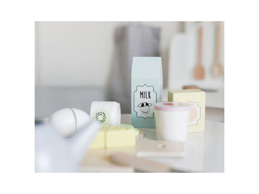 1 plátek sýra, 1 plátek sýra, 1 sendvič, 1 sklenka džemu, 1 jogurt, 1 džus, 1 mléko