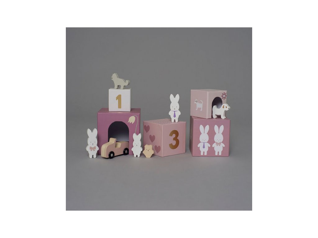 Sada kostek obsahuje i malá roztomilá zvířátka, se kterými si můžete zahrát a zároveň i zábavnou formou naučit pojmenovat jednotlivá zvířátka.