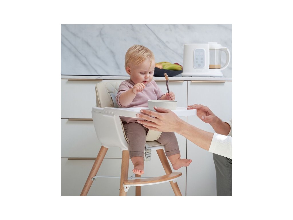Sadu, která je ideální pro první dětské samostatné stolování, tvoří talířek, miska, kelímek na pití, lžička a vidlička.