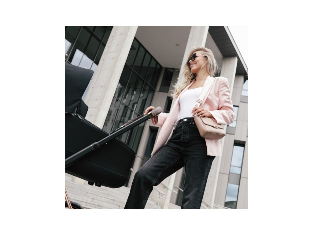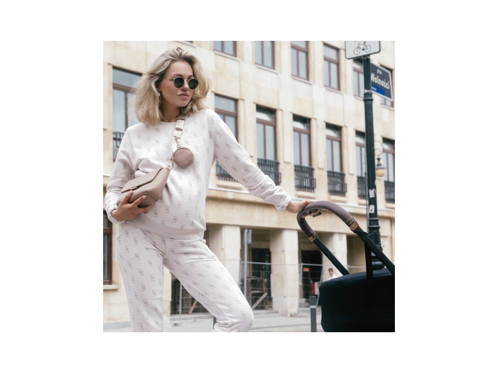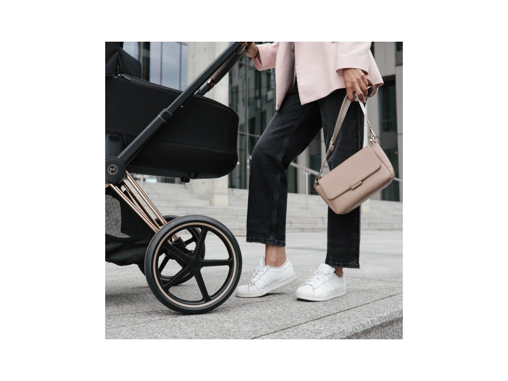 Popruh kabelky má speciální háček pro připnutí obalu na dudlík ve stejném designu.
