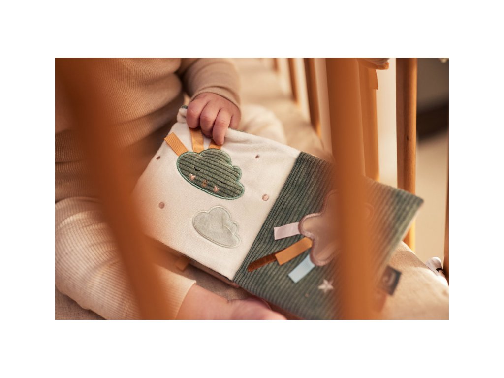Měkká textilní knížka s krásnými přírodními a pohádkovými motivy upoutá pozornost vašeho dítěte množstvím aktivit, ukrytých na jednotlivých stránkách. Ke zkoumání a prohlížení lákají šusticí stránky, různorodé textury nebo např. bezpečné zrcátko. Knížka pomáhá rozvíjet jednotlivé smysly dítěte i koordinaci ruka / oko.