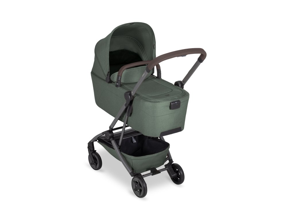 Inovativní hluboký díl se super lehkou instalací na podvozek kočárku. Easy-peasy! Použijte průhlednou ventilaci v roztahovací sluneční cloně a můžete hrát peekaboo! A pokud bude těžké odolávat té vaší malé roztomilosti, uchopte dítko do náručí a přitulte se! Hluboký díl je možné složit do kompaktního obalu - dokonce i s připojeným hlubokým dílem! Jednoduše si ho přes rameno přehoďte a jděte! Šikovné, že? Kolem 6 měsíců, kdy je vaše dítě připraveno prozkoumávat svět, můžete přejít z hluboké postýlky na sedátko a začít tak společně objevovat svět. Kdo je připraven na procházku?