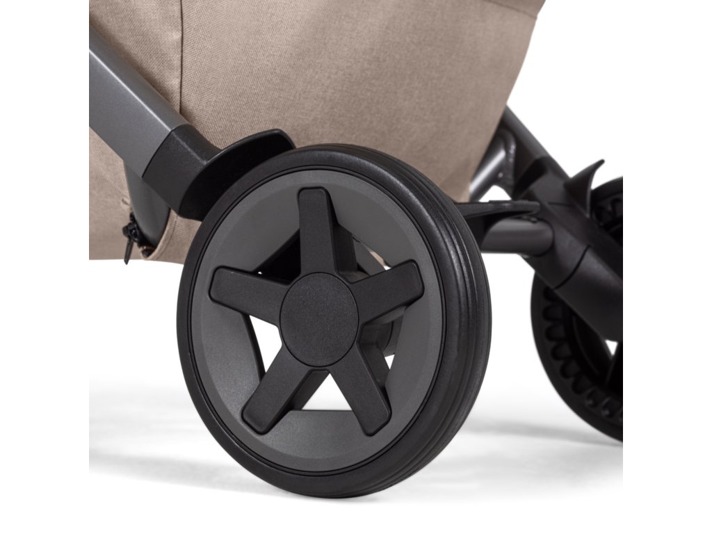 Když přijde čas na spánek, sedátko lze snadno sklopit až do plně ležící polohy, bez narušení spánku. Extra velká sluneční stříška s ochranou UPF 50+ chrání před sluncem a integrované větrací panely zajišťují cirkulaci vzduchu i v horkých dnech.