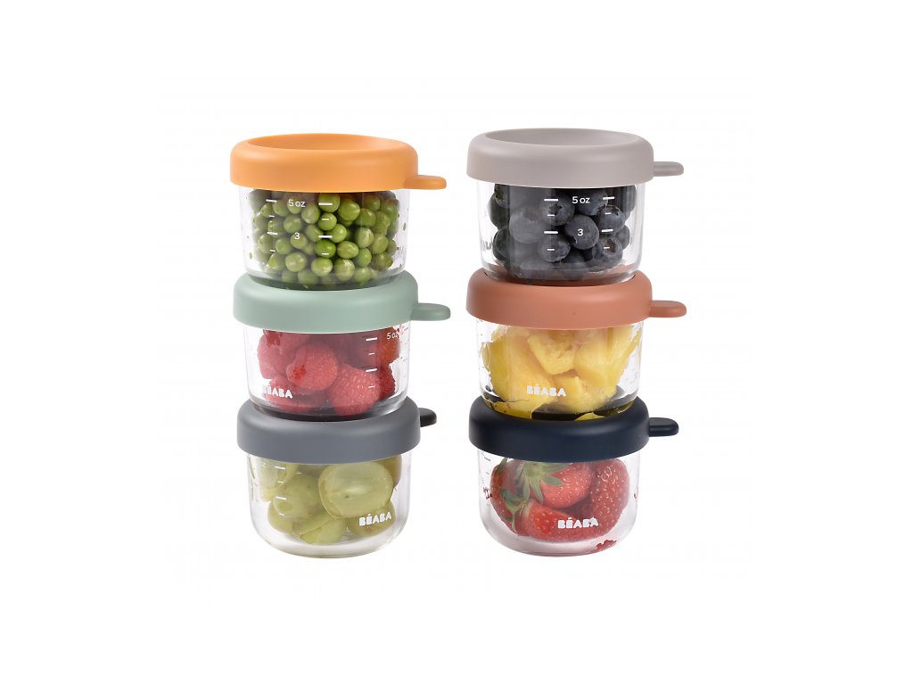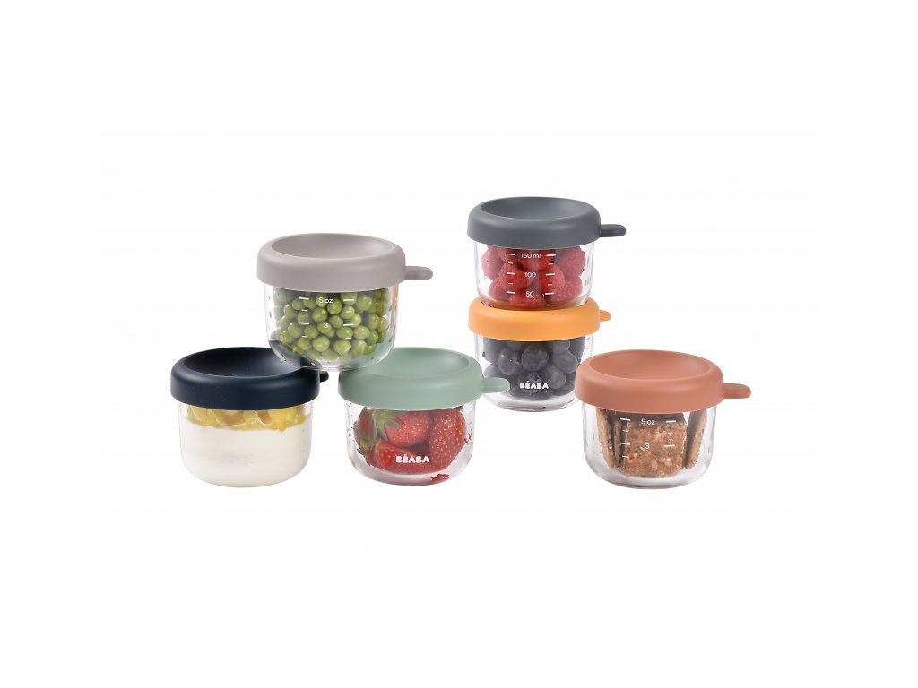 Beaba Kelímky na jídlo skleněné 6x 150 ml Sunrise
