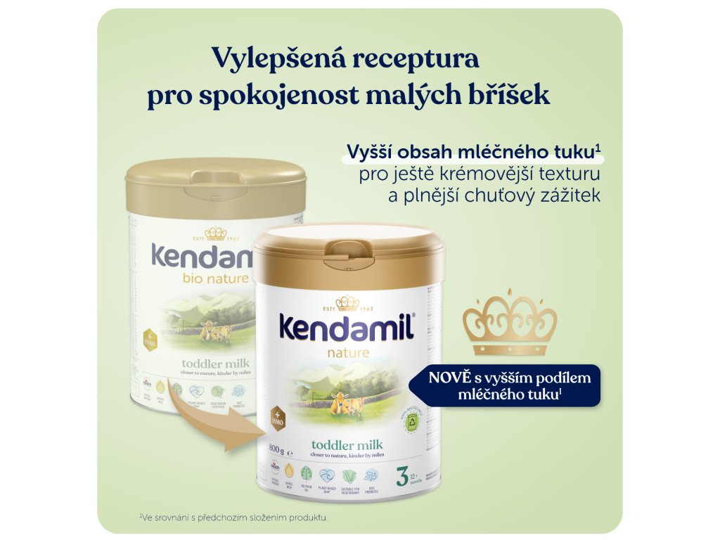 Kendamil Nature 3 HMO+ je určen pro výživu malých dětí od ukončeného 12. měsíce a měl by tvořit pouze část smíšené stravy.