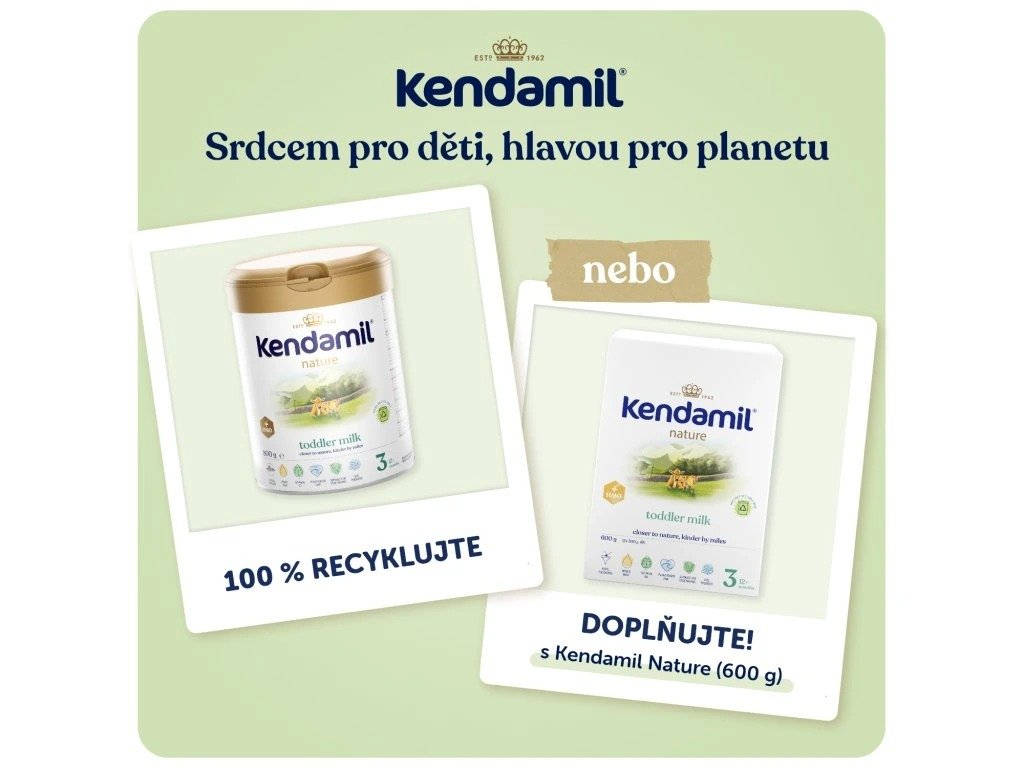 KENDAMIL NATURE 3 HMO+ (800 g), mléčná výživa malých dětí v prášku. Potravina pro zvláštní výživu od ukončeného 12. do 36. měsíce. (od ukončeného 10. měsíce)