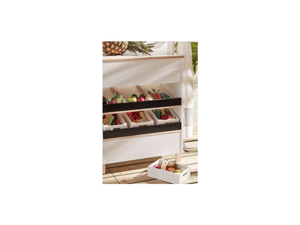 Dřevěný stánek, ze kterého si malý prodavač může vytvořit např. obchůdek se zmrzlinou či ovocem a zeleninou. Dvě velké police slouží pro vystavení zboží, popisovatelná tabule umožňuje vytvořit pokaždé nový,...