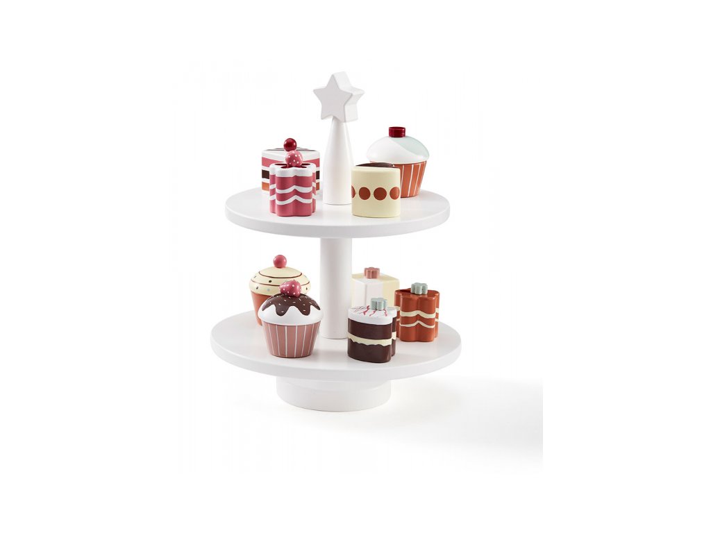Sada 9 neodolatelných zákusků v dřevěném provedení pro dětskou párty či odpolední čaj. Zákusky je možné servírovat na patrovém stojanu z kolekce dřevěných hraček Kids Concept Bistro (stojan se prodáá samostatně).