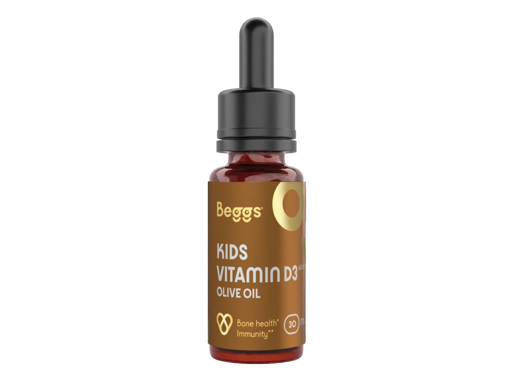 Beggs Kids Vitamin D3 400 IU Olive Oil je doplněk stravy v kapkách vhodný pro děti a miminka od narození.