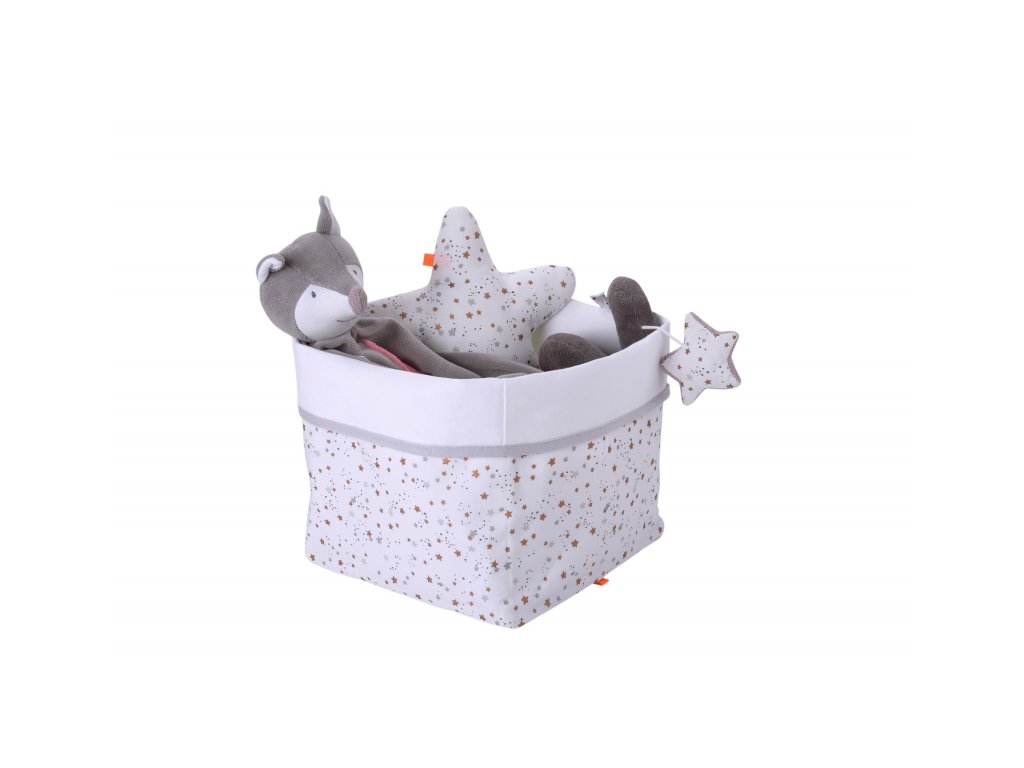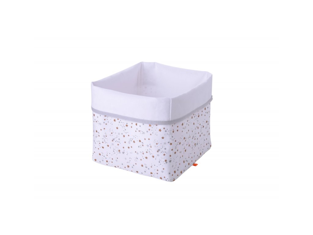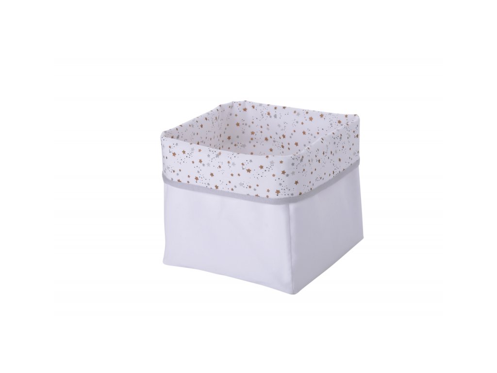 Krásná textilní krabice je ideální pro přehledné uložení kosmetiky a drobností na přebalovacím pultu.