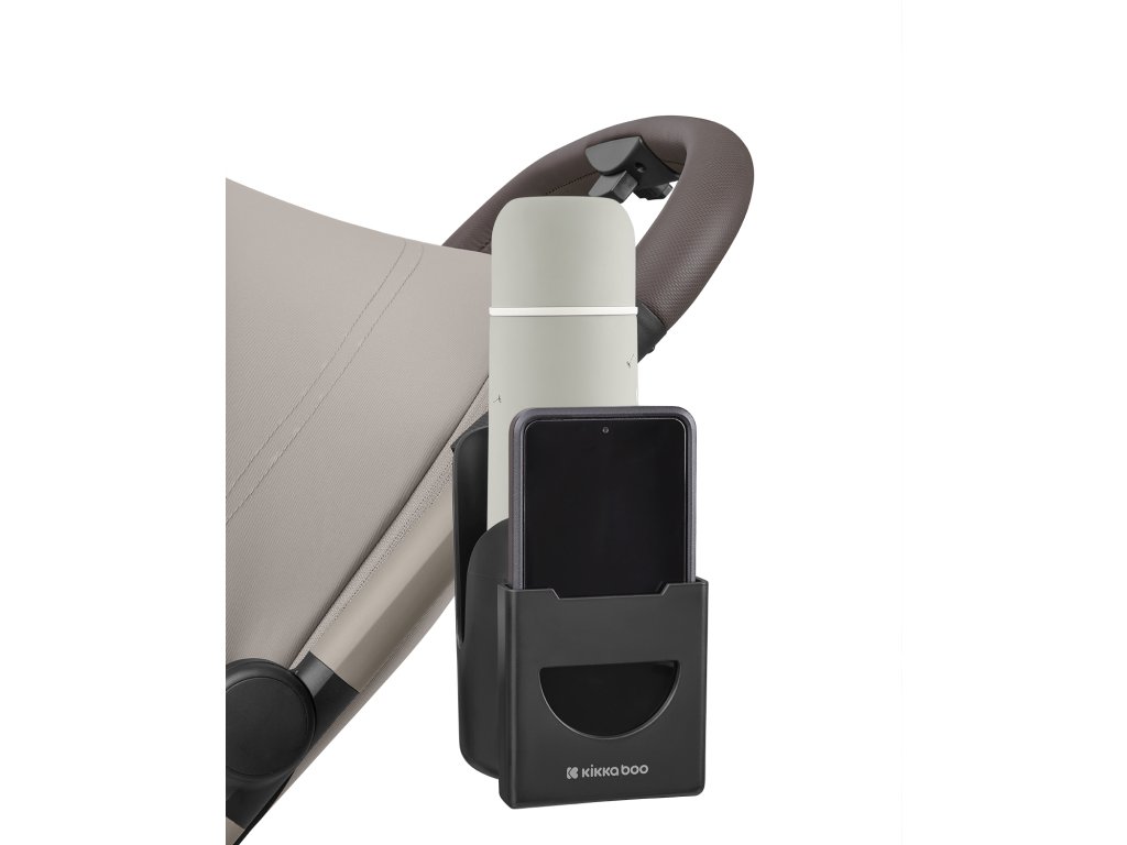 Držák na nápoj s přihrádkou na mobil KikkaBoo je praktický doplněk ke kočárku, který udrží nápoj i mobil vždy po ruce a vám nechá volné ruce na řízení kočárku. Díky nastavitelné poloze si držák otočíte do ideálního úhlu a univerzální uchycení s protiskluzovou gumou pevně drží na většině typů rukojetí.