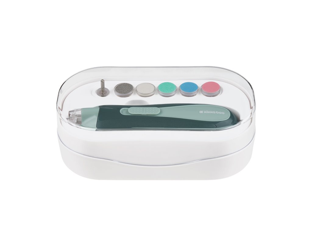 Elektrický pilník na nehty je určen pro bezpečnou a rychlou úpravu nehtů dětí od narození i starších dětí a dospělých. Součástí sady je 6 výměnných nástavců pro přizpůsobení pilníku věku dítěte. Automatické vypnutí díky citlivosti na tlak umožňuje zcela bezpečné použití.