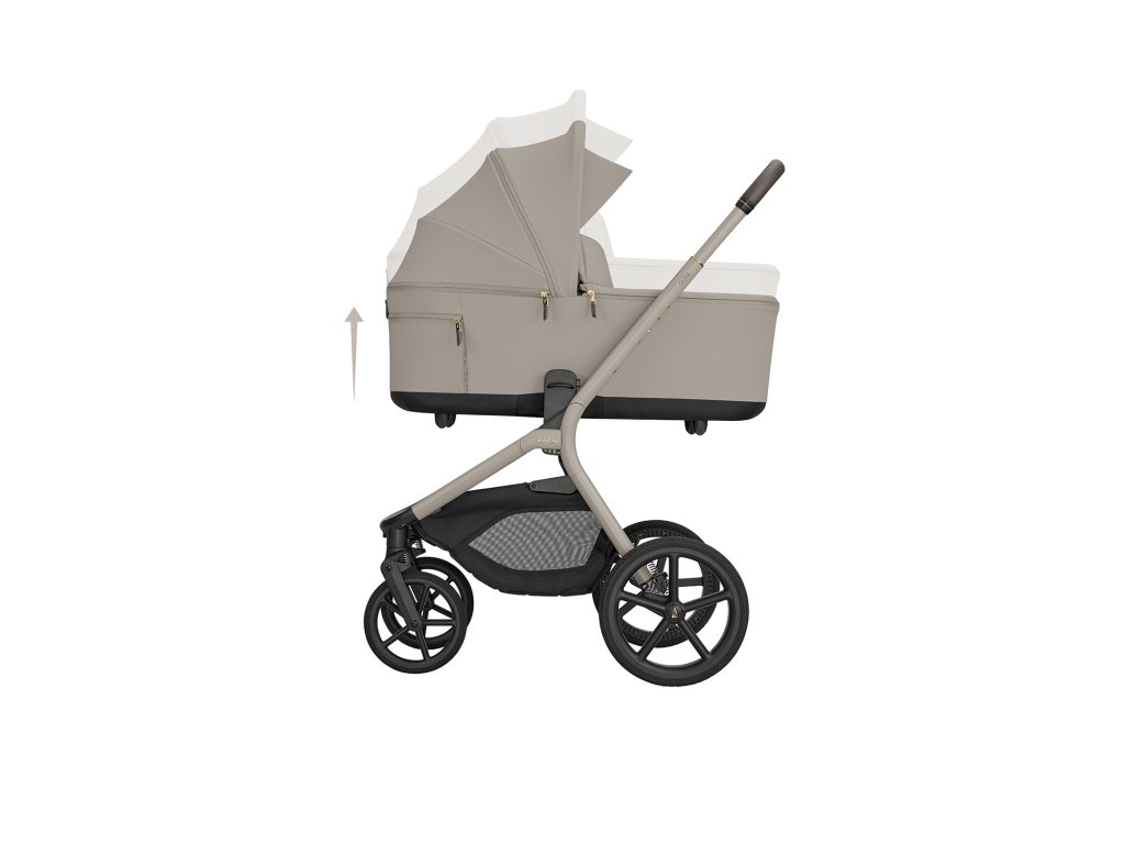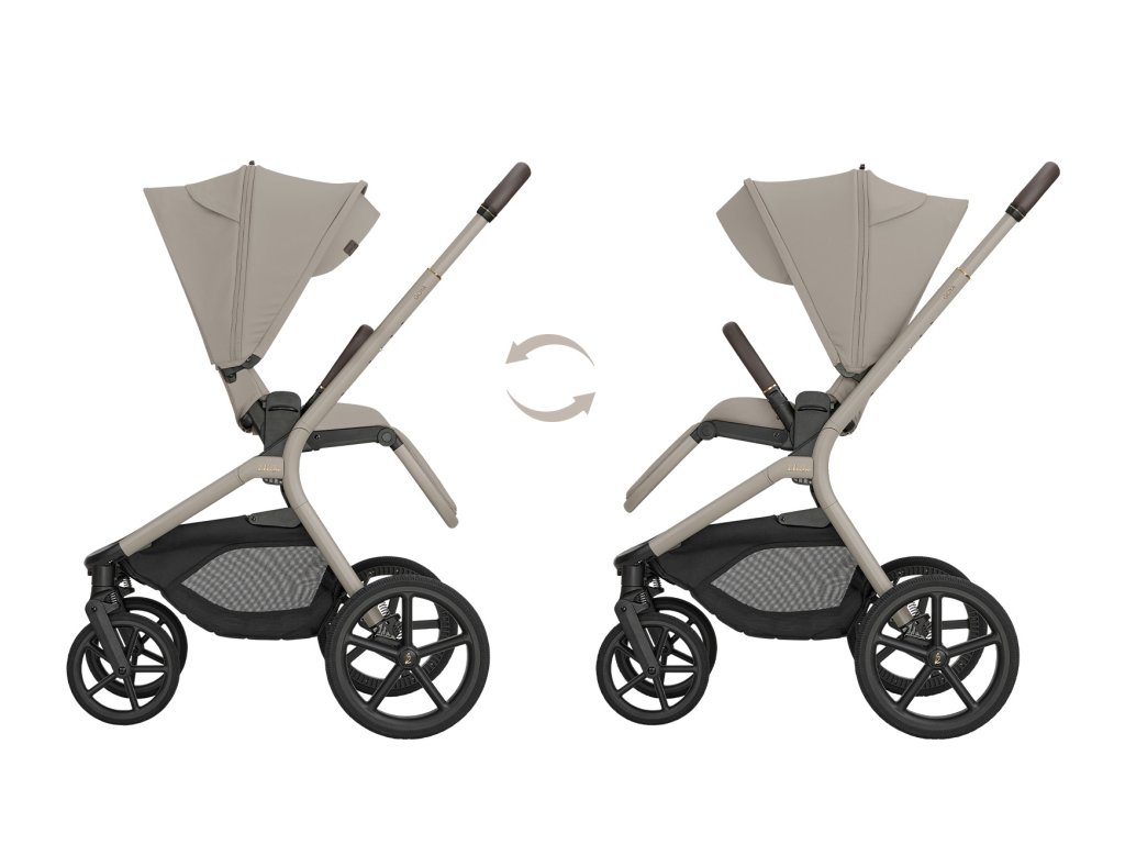 Sportovní sezení je možné nasadit po i proti směru jízdy a díky tlačítkům s pamětí ho uvolníte z podvozku pohodlně jednou rukou. Výšku sezení můžete nastavit do dvou poloh pro přizpůsobení kočárku podle výšky rodiče. Odnímatelné madlo před dítětem je otočné o 360° pro snadnou manipulaci s dítětem a potažené příjemnou ekokůží.