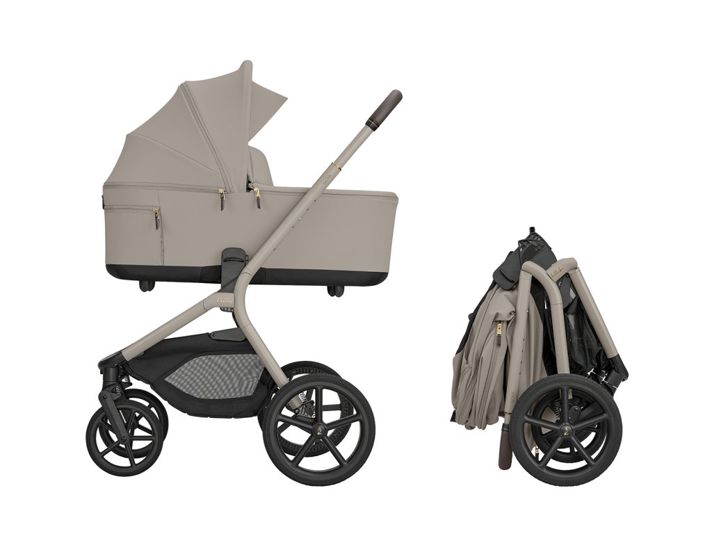 Korbička je navržená s důrazem na skladnost a nabízí unikátní možnost skládání kočárku do kompaktního tvaru včetně korbičky nasazené na podvozku. Tlačítka s pamětí umožňují rychlé uvolnění korbičky z podvozku jednou rukou. Pro přizpůsobení kočárku podle výšky rodiče je možno nastavit výšku korbičky do dvou poloh.