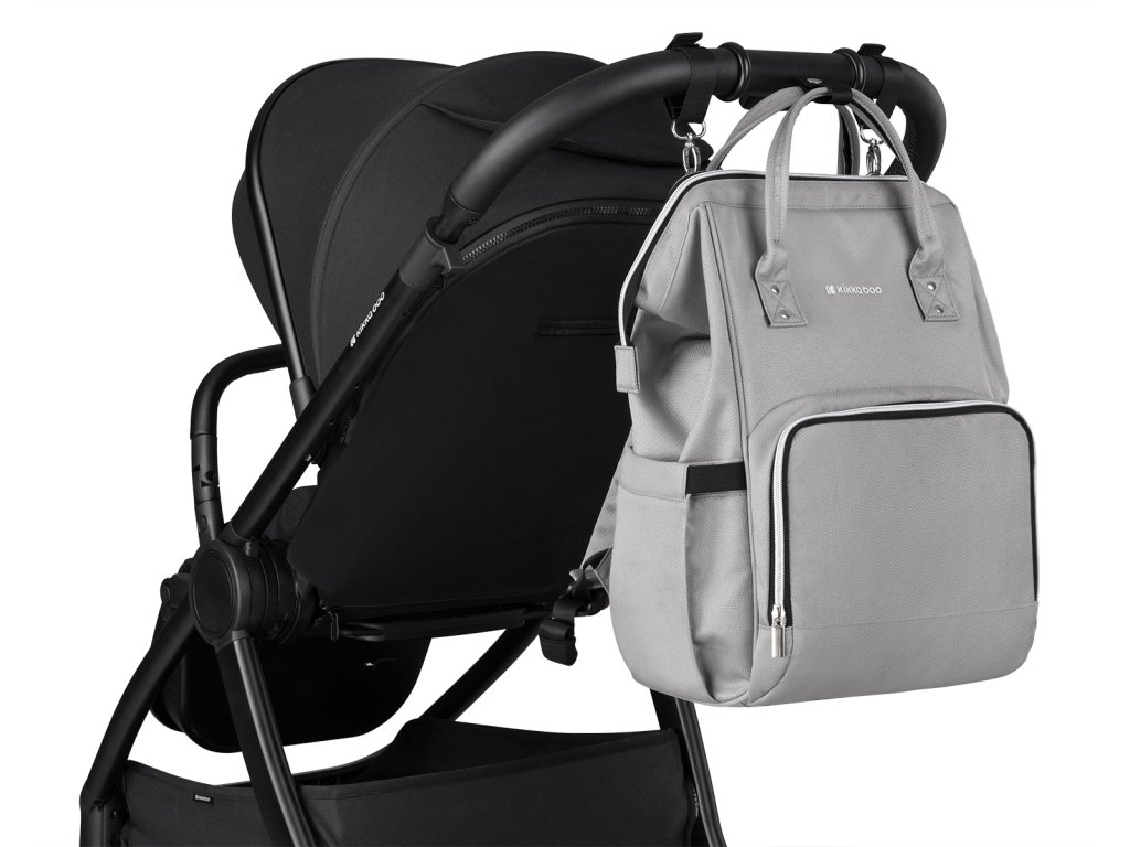 Batoh je možné zavěsit na kočárek, nosit na zádech i v ruce.