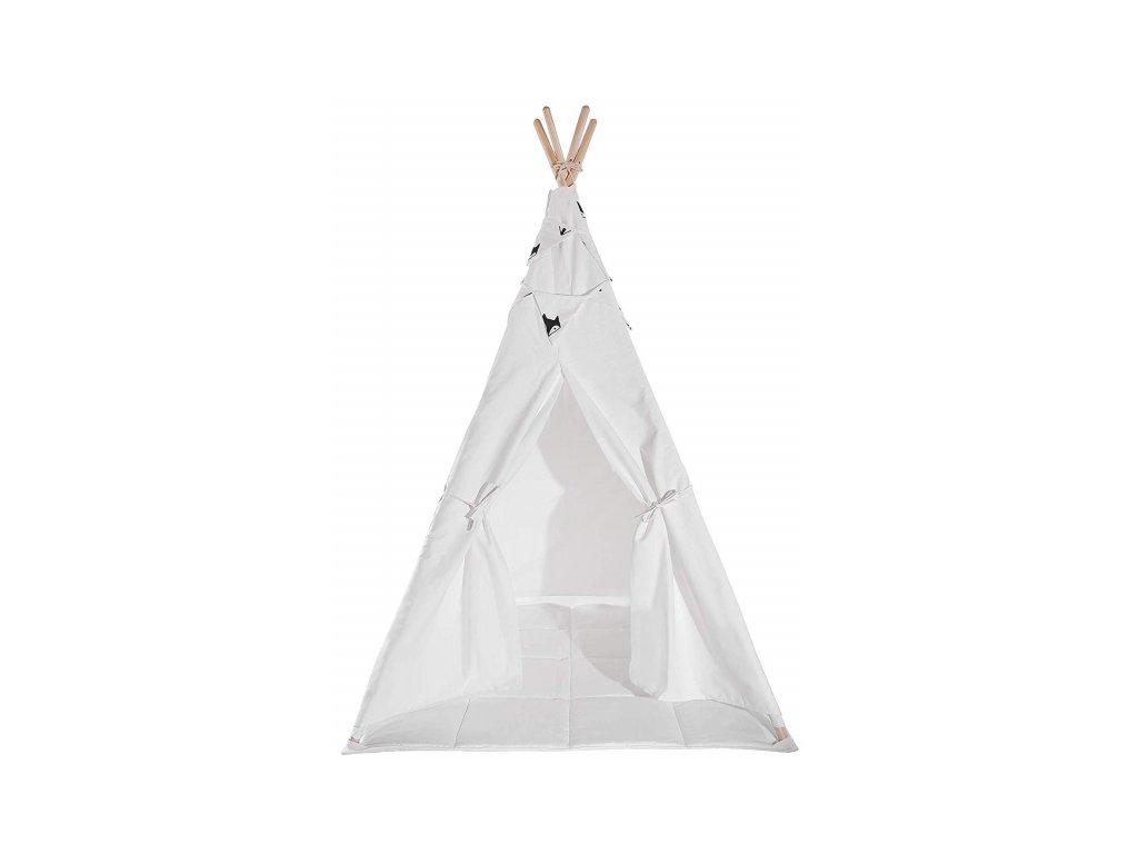 Indiánské teepee útulné místo pro chvíle odpočinku, zábavná skrýš dřevěná konstrukce bavlněná tkanina s okénkem na jedné straně podložka girlanda použité materiály jsou šetrné k životnímu prostředí a bez obsahu škodlivých látek rozměry: 112 x 107 x 160 cm materiál konstrukce: dřevo materiál textilie: 100% bavlna