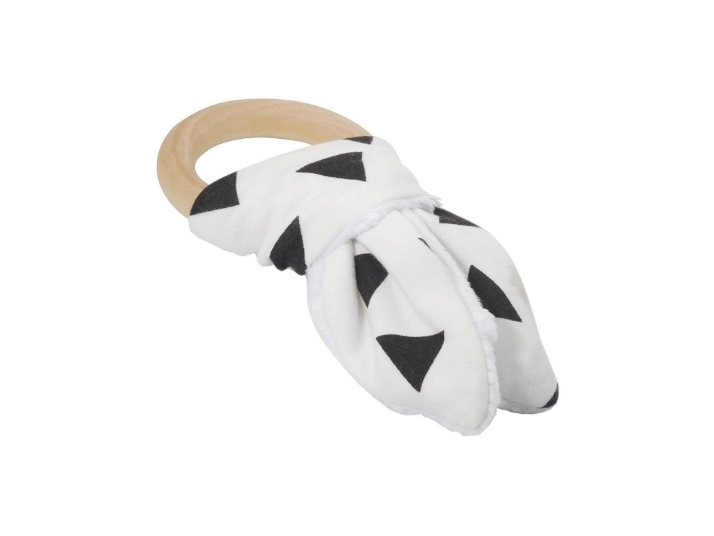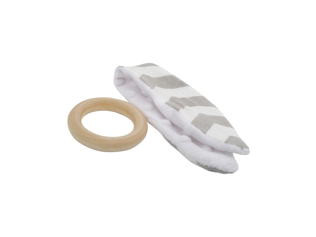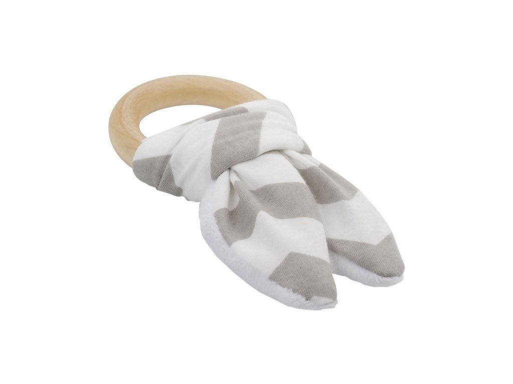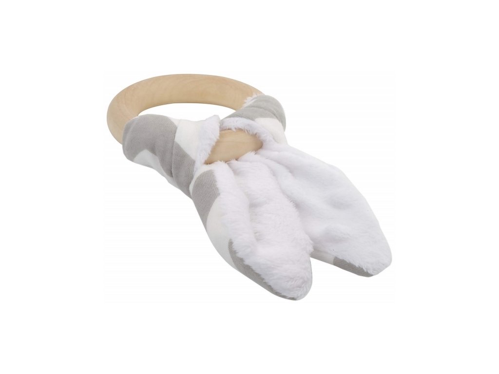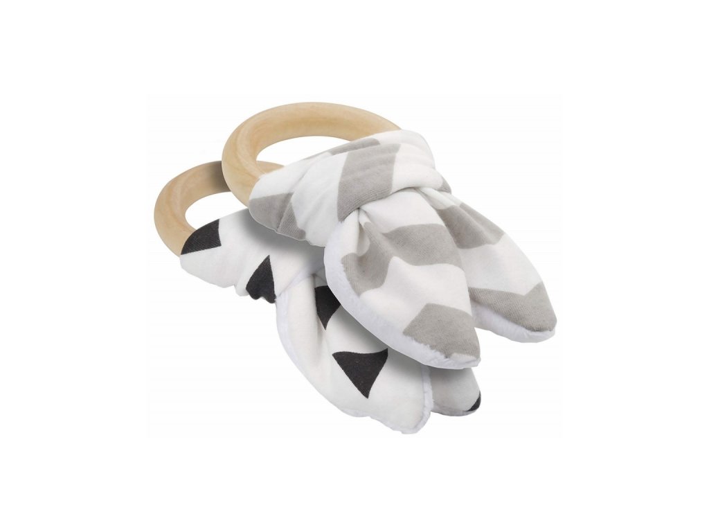 Sada dvou dřevěných kousátek s měkkými bavlněnými oušky, která šustí. Skvělá hračka pro rozvoj motoriky a úchopu a také k utěšení bolavých dásní při prořezávání zoubků. Pro výrobu byly použity materiály šetrné k životnímu prostředí neobsahující škodlivé látky. Tato hračka je vhodná pro děti od 6 měsíců.