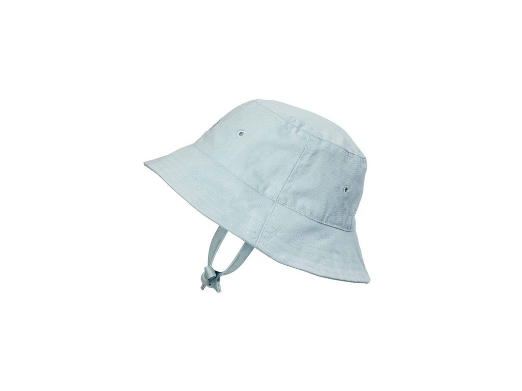 Klobouček má široký okraj, který se dá ohrnout a šňůrky na zavázání pod krkem.