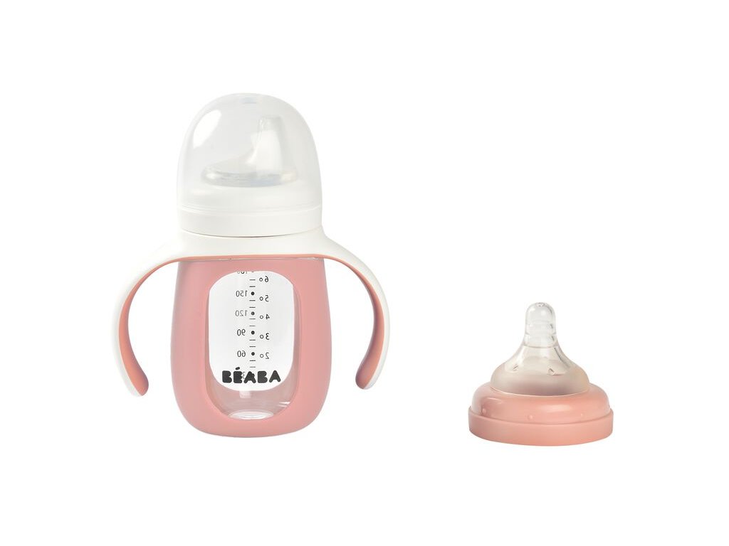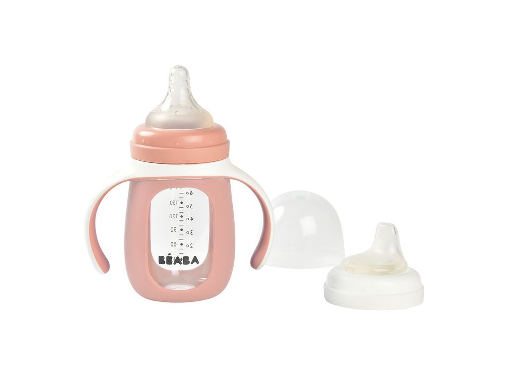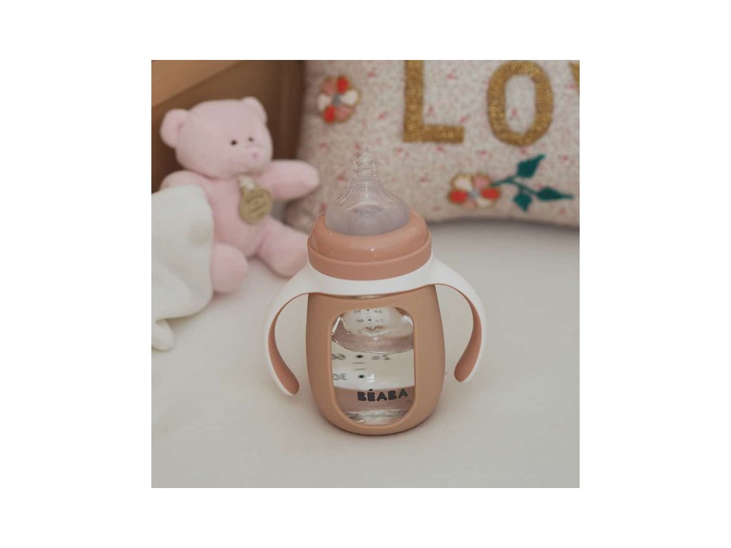 Skleněná kojenecká láhev Beaba 2v1 je dodávána se silikonovou savičkou a silikonovým pítkem pro snadné učení a přechod dítěte ze savičky na pítko. Ochranný silikonový návlek láhev chrání před nárazy a před vyklouznutím z ruky. Odnímatelná držadla usnadňují dítěti držení lahvičky. Víčko chrání obsah a čistotu savičky nebo pítka.