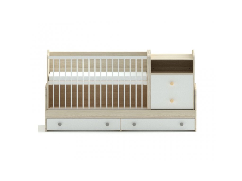 - Jednu čelní stranu kombi postýlky tvoří skříňka se šuplíky.