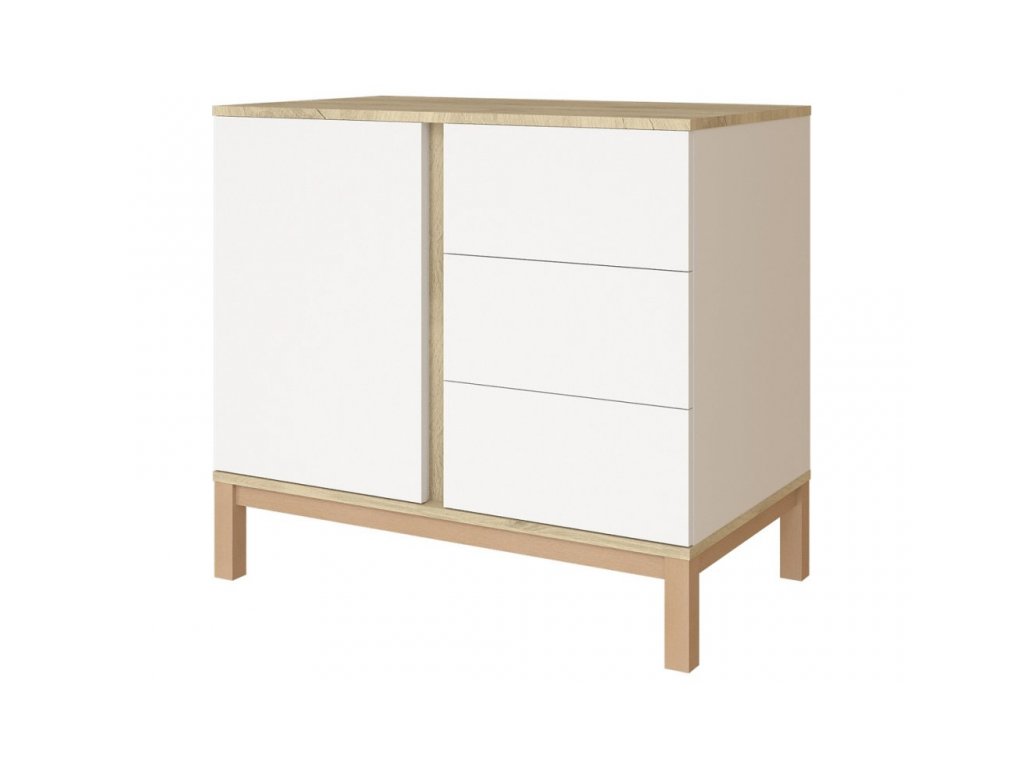 Nezbytný prvek dětského pokoje. Byla navržena tak, aby se vešla do relativně malého prostoru, ale přesto nabídla novopečeným rodičům tu největší možnou pomoc. Její výška, úložné plochy a variabilita byly navrženy na základě zkušeností rodičů. Slouží nejen jako úložný prostor, ale horní část komody lze po dokoupení nástavce na komodu využít jako přebalovací pult.