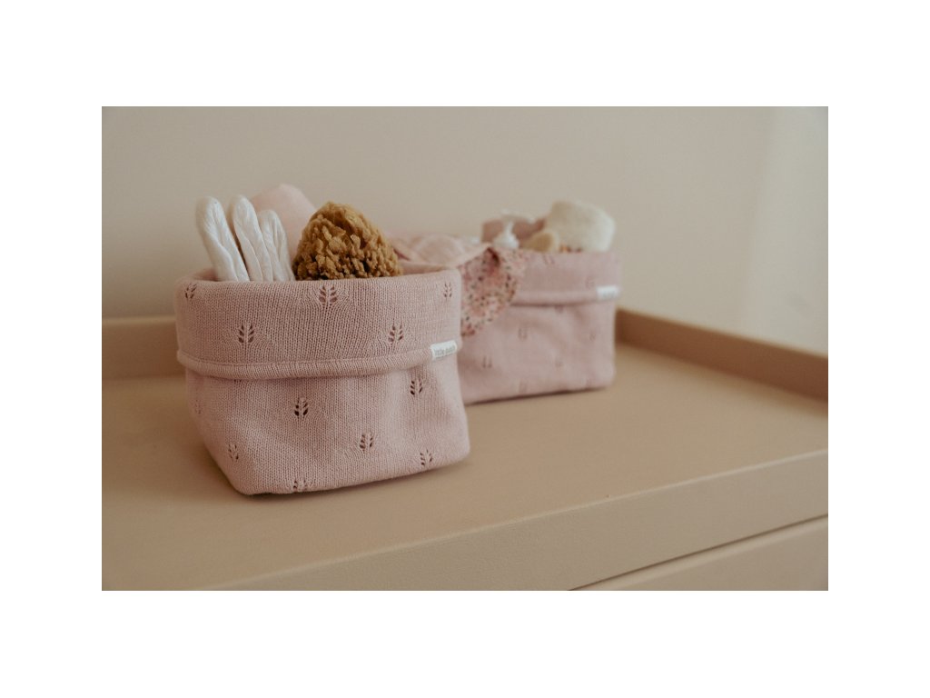 Košík v krásném pleteném provedení je vyroben z pevného bavlněného materiálu. Využijete jej pro přehledné uložení všeho, co potřebujete mít po ruce při každodenní péči o vaše miminko. Ohrnovací okraj umožňuje přizpůsobit výšku košíku vašim potřebám.