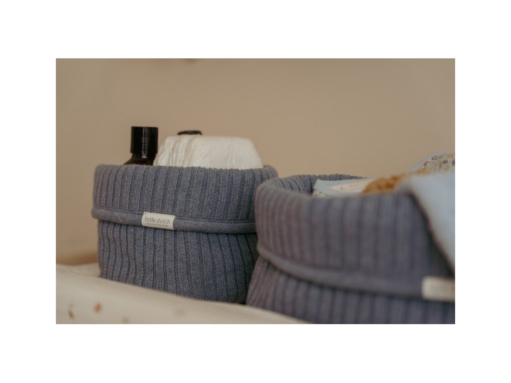 Košík v krásném pleteném provedení je vyroben z pevného bavlněného materiálu. Využijete jej pro přehledné uložení všeho, co potřebujete mít po ruce při každodenní péči o vaše miminko. Ohrnovací okraj umožňuje přizpůsobit výšku košíku vašim potřebám.