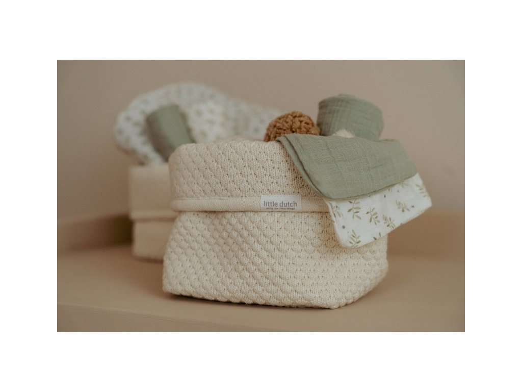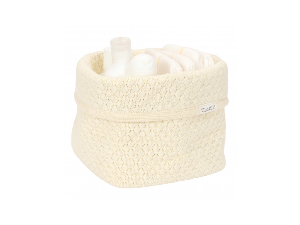 Košík v krásném pleteném provedení je vyroben z pevného bavlněného materiálu. Využijete jej pro přehledné uložení všeho, co potřebujete mít po ruce při každodenní péči o vaše miminko. Ohrnovací okraj umožňuje přizpůsobit výšku košíku vašim potřebám.