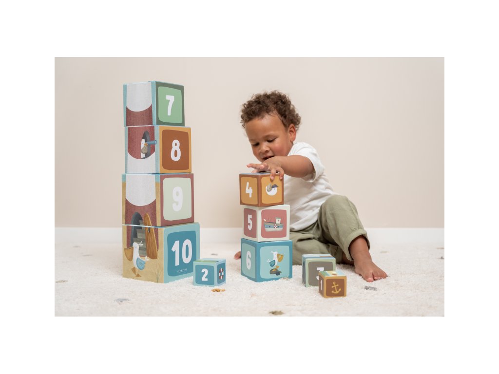 Kostky jsou součástí designové kolekce hraček Little Dutch Námořnický záliv.