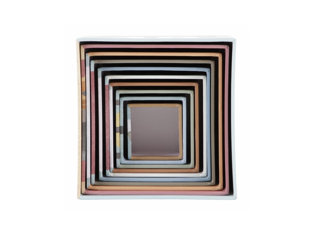 Nejmenší kostka má 5 cm a největší má 14 cm. Po skončení hraní kostky snadno uložíte složením do sebe.